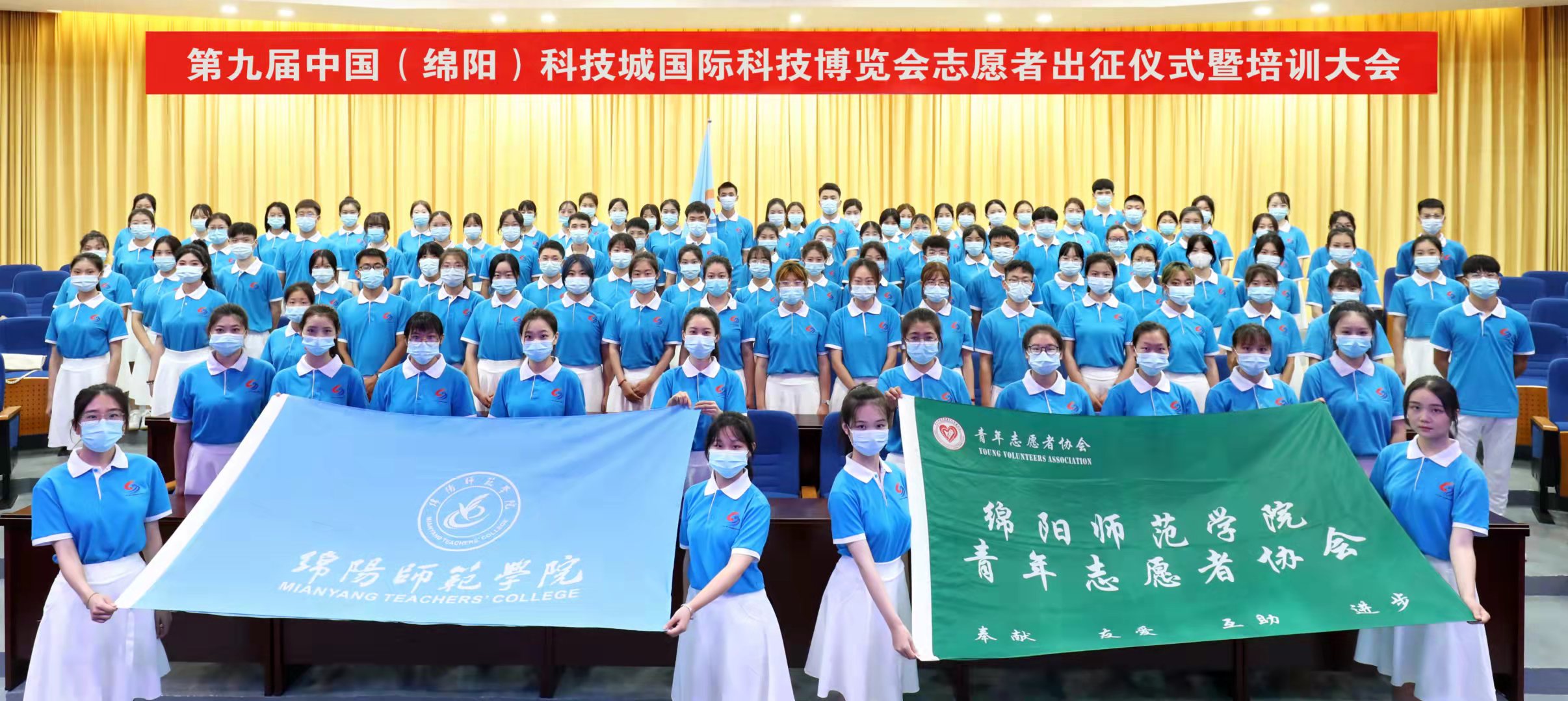 9月5日,第九届中国(绵阳)科技城国际科技博览会志愿者出征仪式暨培训大会在我校高新校区厚德楼246报告厅举行,团市委书记胡段钦出席仪式为志愿者授旗并讲话,共计120名来自我校的志愿者参加。