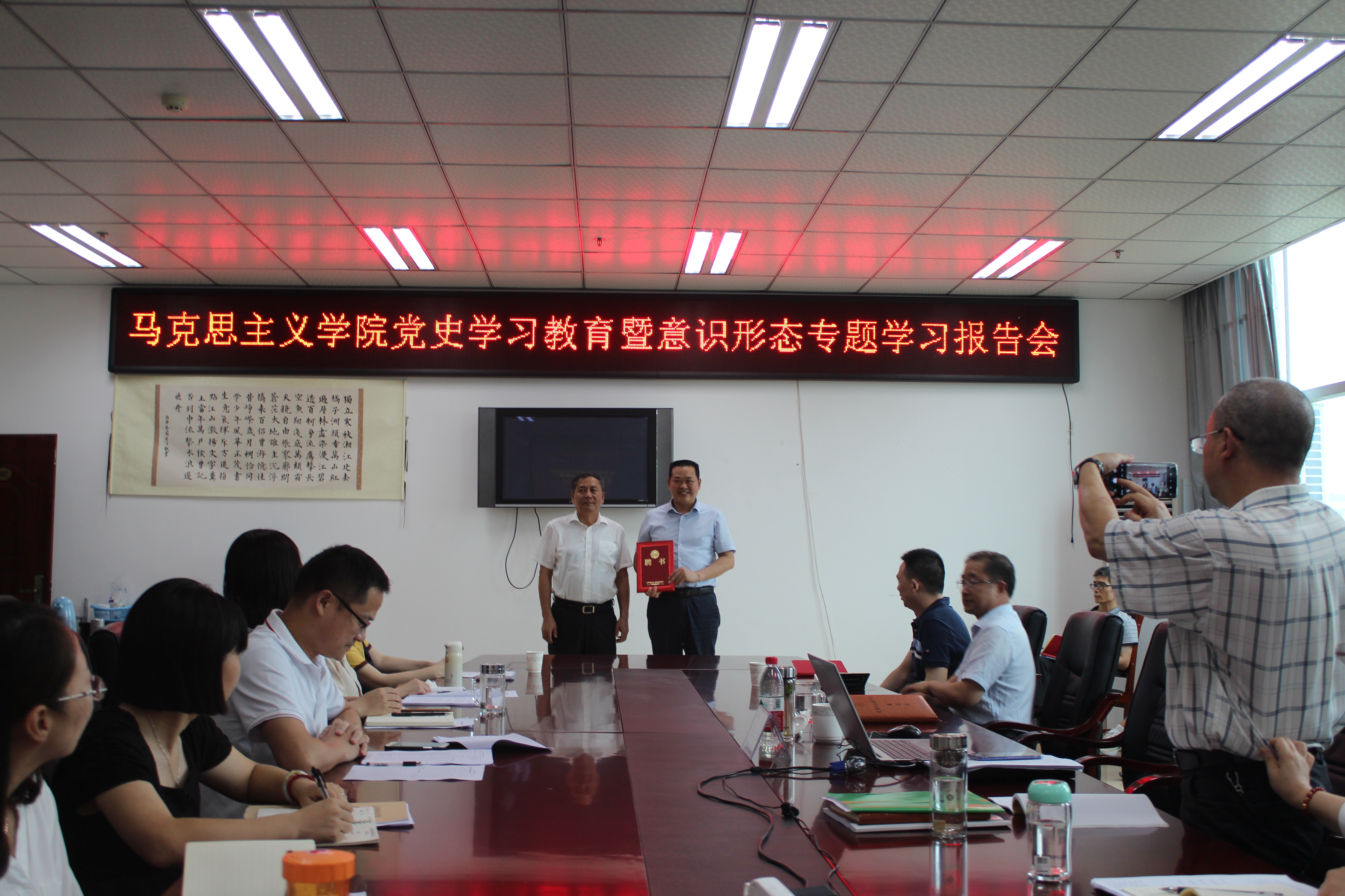 王海滨现场为陈进宝颁发了“马克思主义学院特聘专家”聘书。