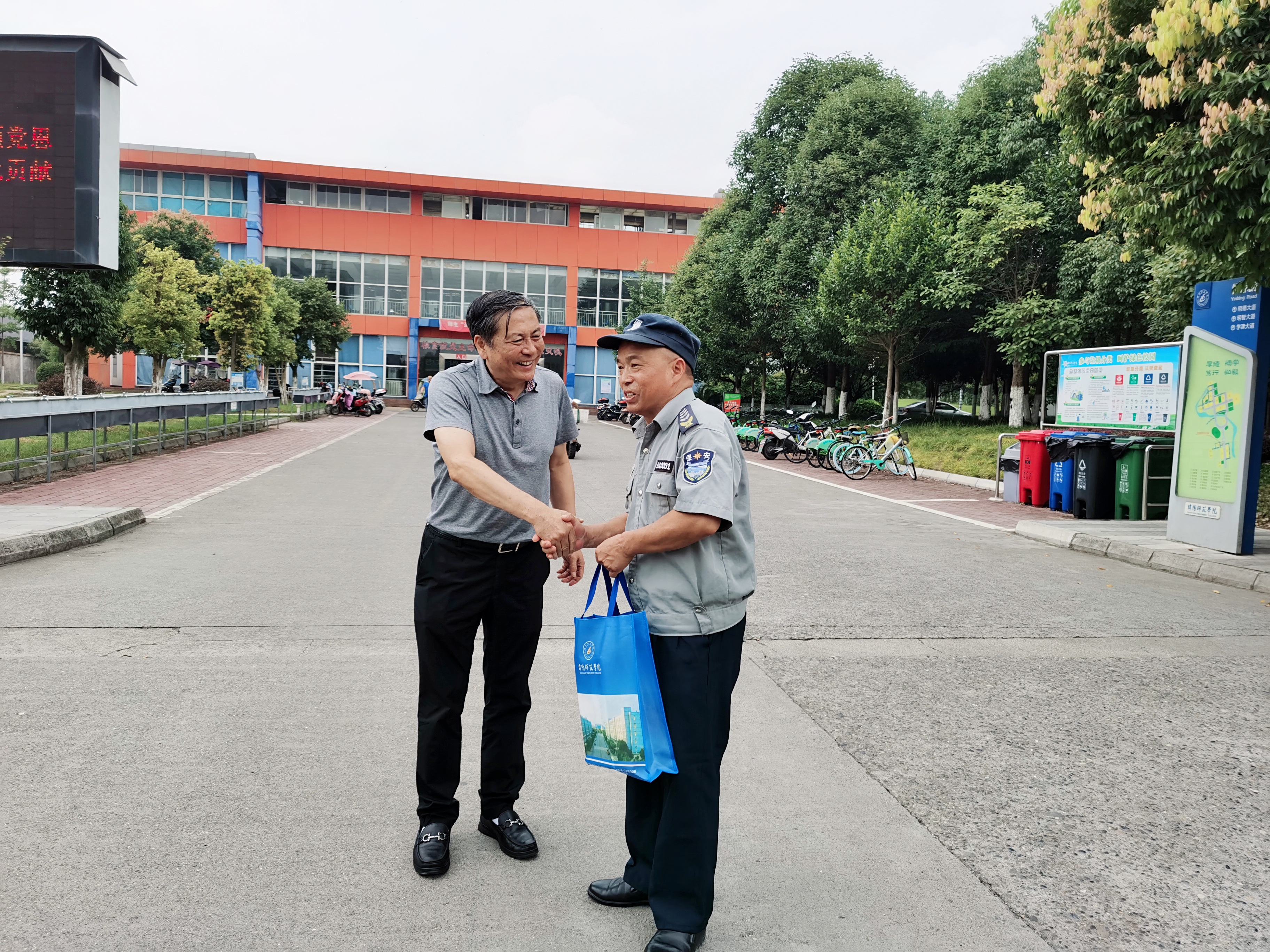 烈日炎炎,酷热难耐,但总有那么一群人,不畏烈日骄阳,坚守岗位,挥汗如雨,用责任和担当守护绵师。为进一步深化“我为群众办实事”实践活动,受学校党委和上级工会的委托,党委书记王海滨、副校长王力率队校工会、机关党委党员志愿者服务队组织开展了“关爱教职工 夏日送清凉”活动,为高温下坚守岗位教职工们送去丝丝清凉。