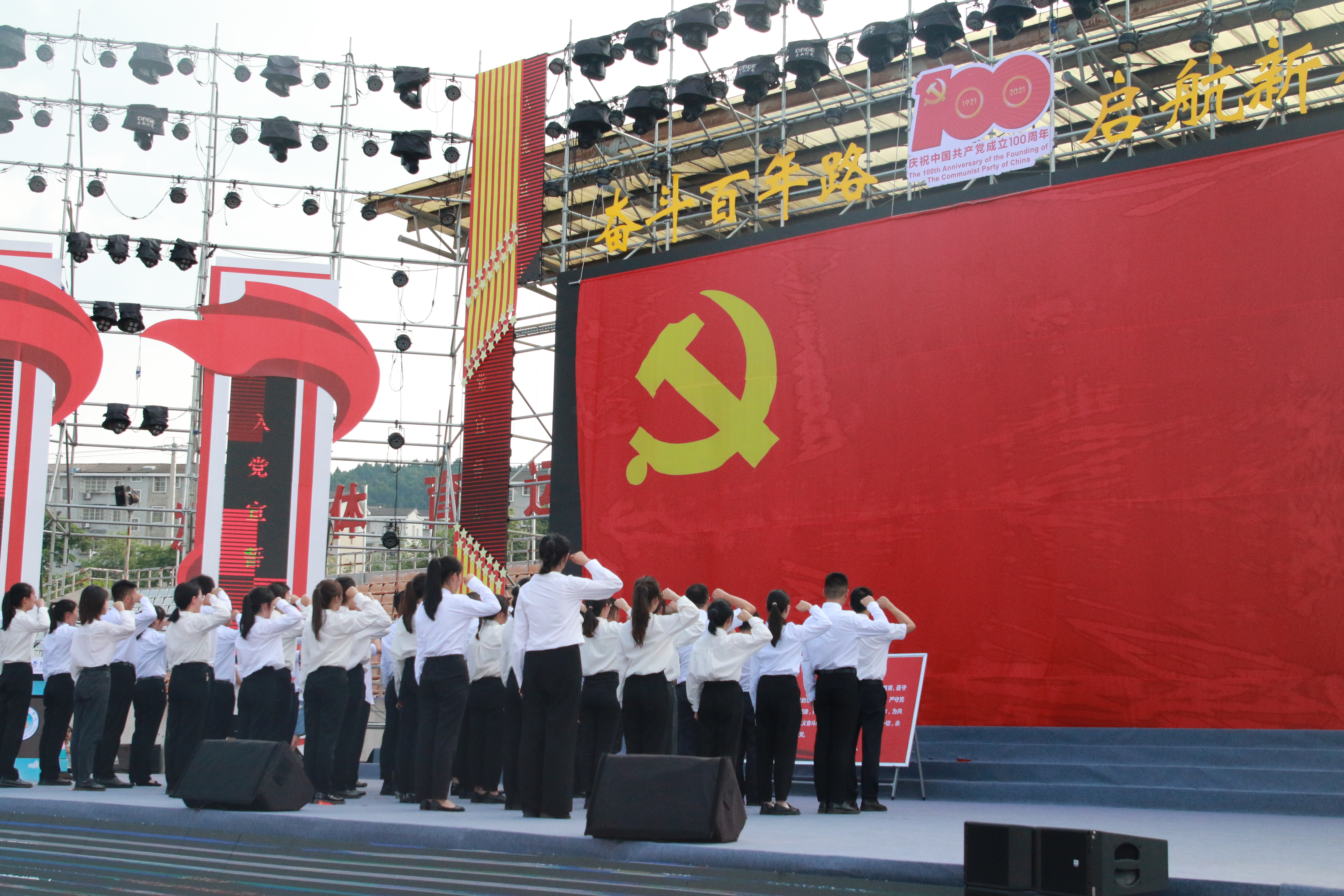 此次庆祝中国共产党诞辰100周年入党宣誓大会在《没有共产党就没有新中国》歌声中结束。