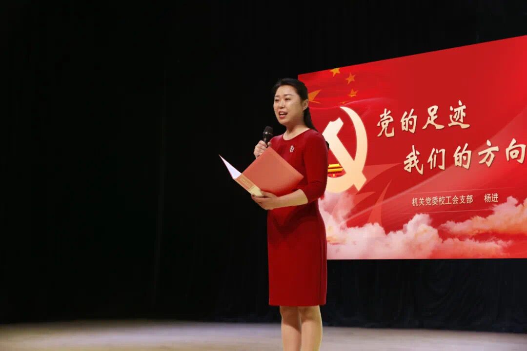这个留着干练的长发,头发半扎,一件简单的白色外套搭配牛仔裤,手里拿着蓝皮的笔记本,在行政楼里进进出出的人叫杨进。我们采访她时,她担任党委宣传部宣传理论科科长,负责学校宣传理论和外宣工作。2020年11月杨进当选为学校工会副主席。同时,她也是绵阳市朗诵艺术家协会的理事。但本质上,她是一名老师,一名优秀教育工作者。
