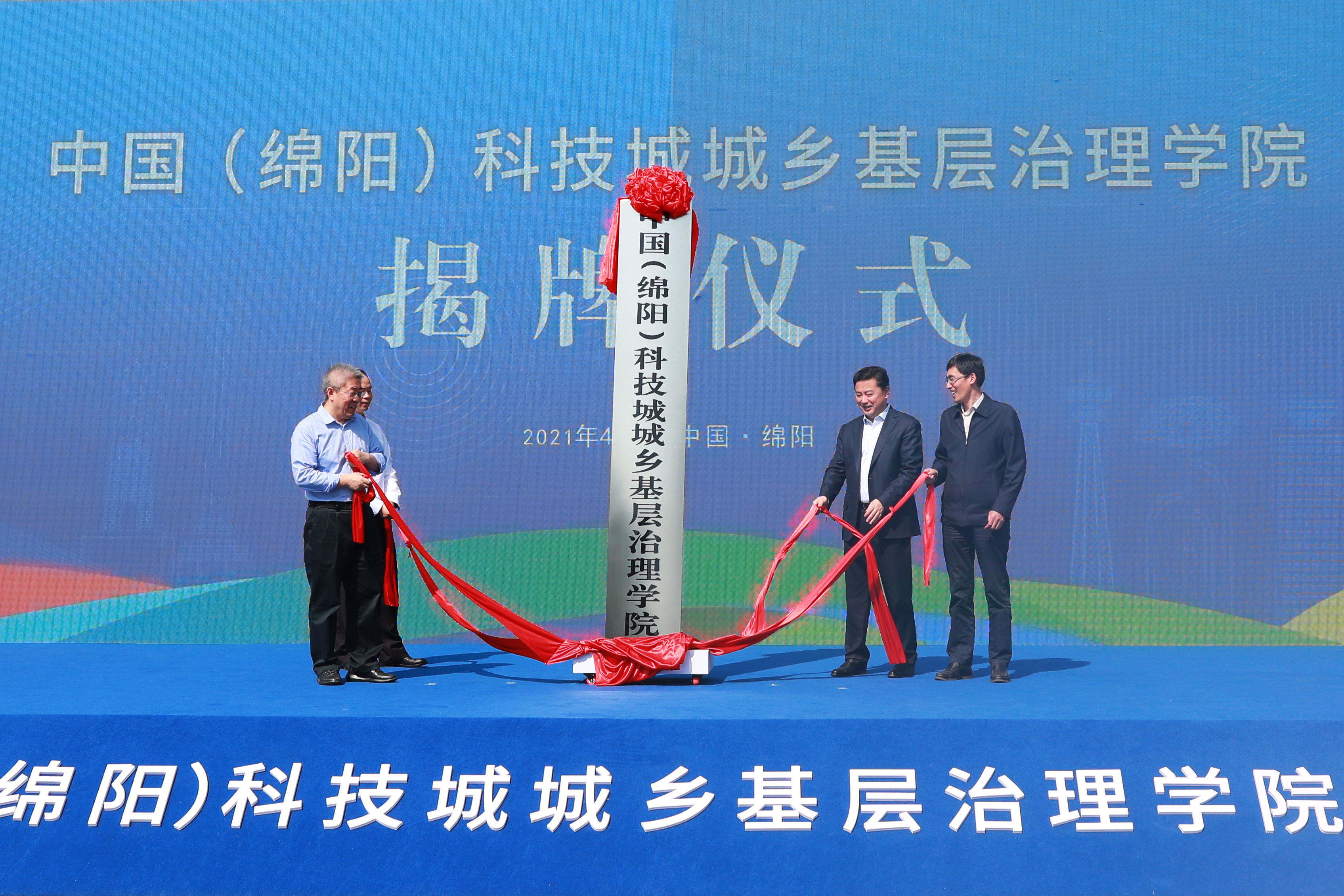 4月30日,中国(绵阳)科技城城乡基层治理学院揭牌成立仪式在我校举行。中国社会科学院社会发展战略研究院院长张翼,绵阳市委书记、市委城乡基层治理委员会主任罗增斌,省委“两新”组织工委专职副书记尹显耀,省民政厅副厅长胡建林出席并为学院成立揭牌。