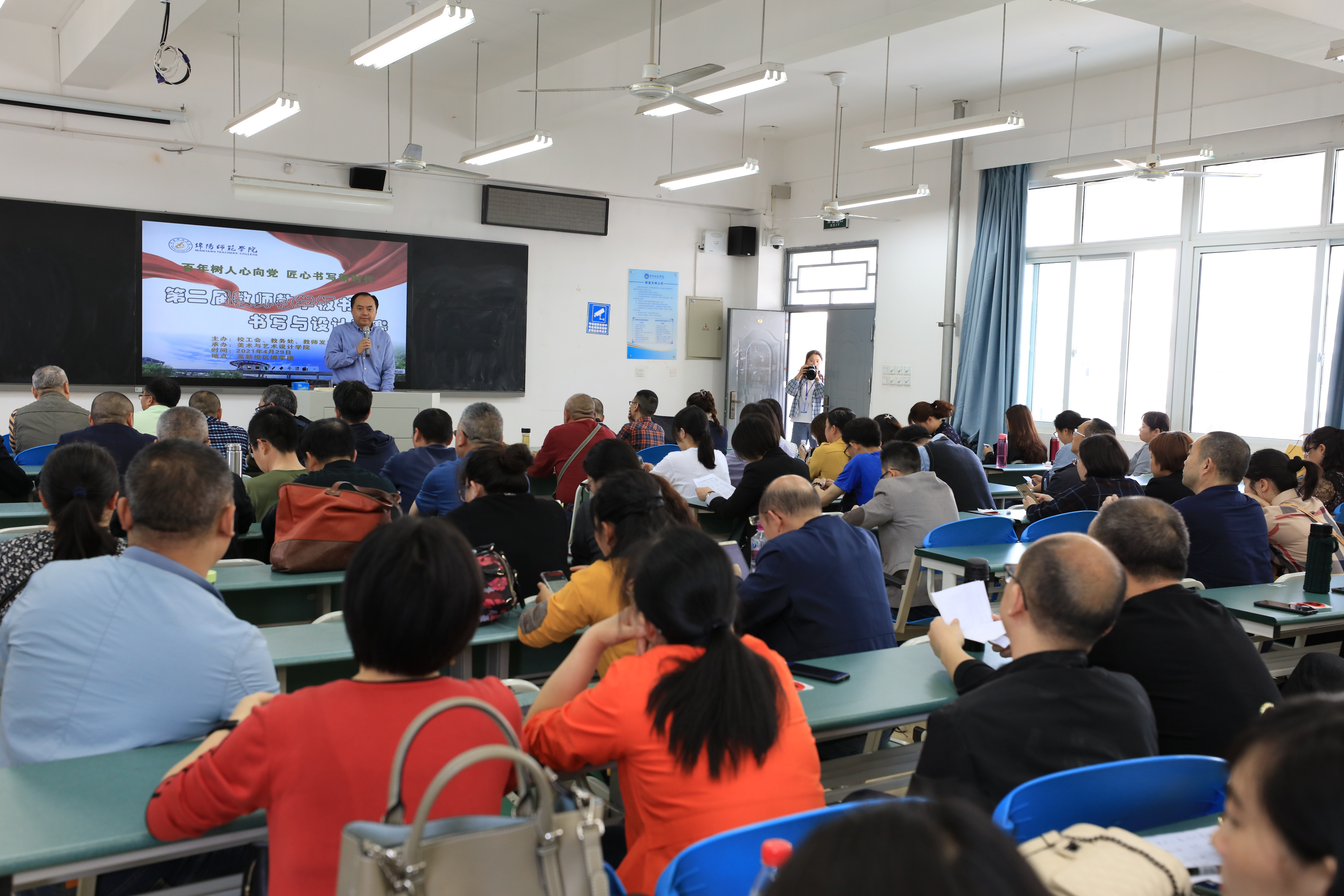 4月29日下午,“百年树人心向党•匠心书写新时代”绵阳师范学院第二届教学板书书写与设计竞赛活动在高新校区博学楼开幕。