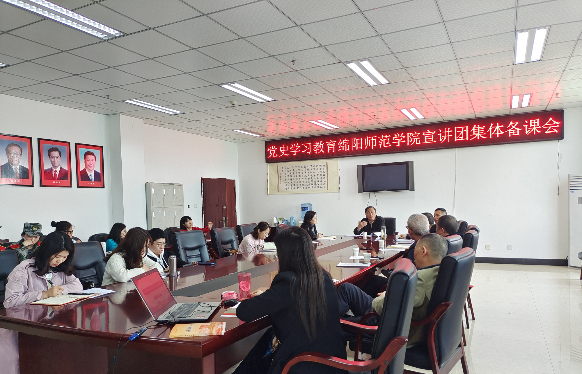 为深入学习贯彻习近平总书记在党史学习教育动员大会上的重要讲话精神,将党史学习教育做深、做实,4月20日,学校在知行楼432召开了“党史学习教育绵阳师范学院宣讲团集体备课会”,围绕如何做好党史专题宣讲工作进行集体研讨。党委书记王海滨,党委宣传部负责人,以及宣讲团师生参加了会议。