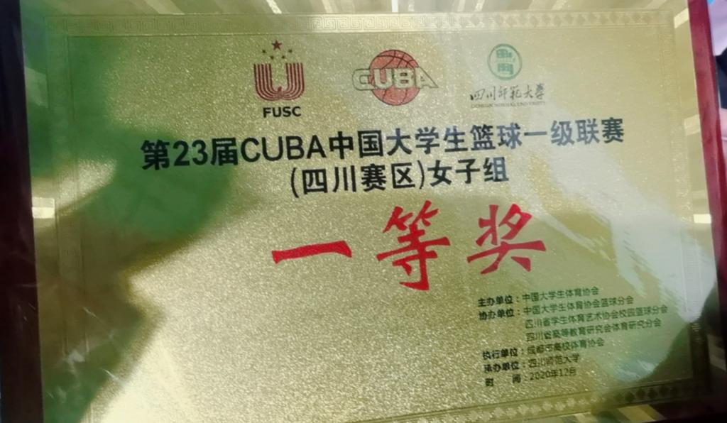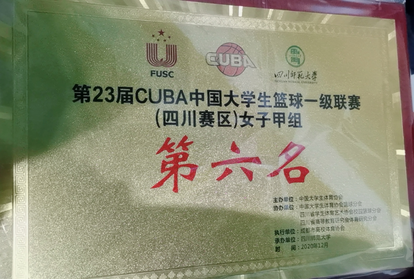 12月1日—3日,第二十三届CUBA中国大学生篮球一级联赛(四川赛区)女子篮球预选赛在四川师范大学举行,全省共27所高校参赛。我校女子篮球队经过3天5场的激烈角逐,荣获一等奖,夺得甲组第六名佳绩,体育与健康教育学院教师公维宗获得“优秀教练员”称号。