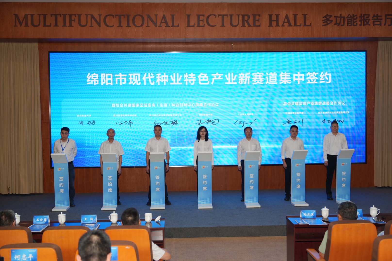 8月29日,中国(绵阳)科技城“四新”发布会——现代种业特色产业新赛道专场活动在绵阳召开。现场以清单形式集中发布了种业领域15项新技术、27项新产品、4个新场景、26个新机会。本次发布会得到各级政府、高校科研院所、龙头企业及行业协会的高度重视。四川省农业农村厅畜牧兽医局二级调研员林胜华、四川省农业农村厅种业发展处副处长余协中、绵阳市人大常委会副主任汪楠、绵阳市人民政府副秘书长王代辉、三台县人民政府副县长何广等出席。学校党委常委、副校长王杨受邀参加活动并签署合作协议。