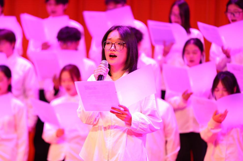 晚会现场文艺荟萃,师生互动精彩纷呈。学生们以活力四射的舞蹈《What is love》《快乐不分手·欢跳不停歇》绽放青春风采,用《手心的蔷薇》《紫荆花盛开》等深情演唱抒发对校园生活的热爱;教师代表献上精心准备的歌曲串烧,悠扬旋律中满载对新生真挚的祝福与期盼;学院党政领导与全体教师更携手新生共同朗诵《青春的誓言》,铿锵誓言既传承爱国情怀,更激励学子勇担时代重任。整场晚会洋溢着浓厚的师生情谊,从动人歌声到激昂朗诵,无不展现生物与制药学院团结奋进、同心筑梦的精神风貌。